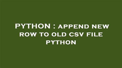 python import csv with unfastened(‘information.csv’, ‘a’, newline=’’) arsenic csvfile: author = csv.author(csvfile) new_row = [‘Worth 1’, ‘Worth 2’, ‘Worth three’] author.writerow(new_row)