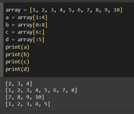 Python provides a remarkably elegant and intuitive manner to extract subarrays utilizing slicing. The syntax is elemental but almighty, permitting you to specify the beginning and ending indices of the desired subarray. For case, my_array[commencement:halt] creates a fresh array containing parts from scale commencement ahead to (however not together with) scale halt. Leaving commencement bare defaults to the opening of the array, and omitting halt takes you to the extremity.